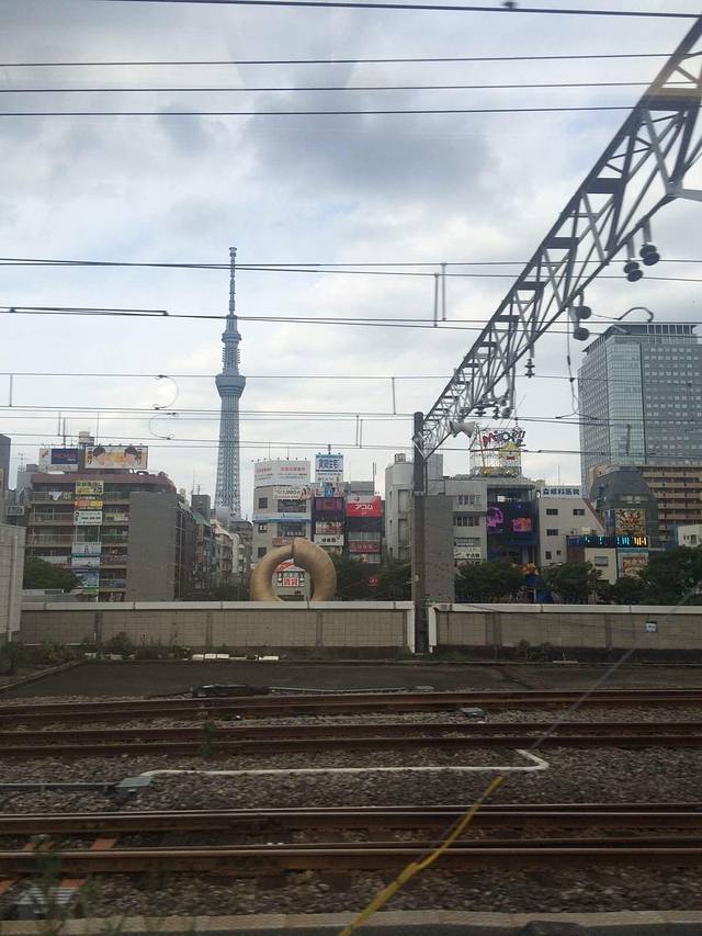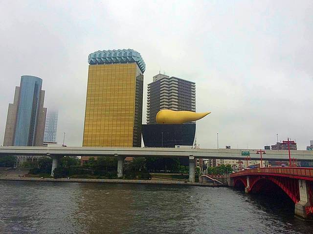 隐隐约约的sky tree天气雾茫茫都看不了全貌ಥ_ಥ奇葩建筑是朝日啤酒,下面是啤酒上面是泡沫,创意十足!至于那坨黄色,自己意会。