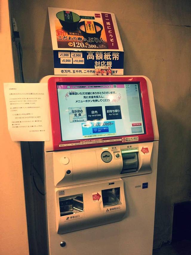 出门觅食的时候已经10点多,街上还是很多人很多店,不愧是繁华的新宿。随便挑了一家24营业的餐馆,进去居然是全自动点单收银,震惊!刘姥姥进大观园…暗自揣测:谁来清机?