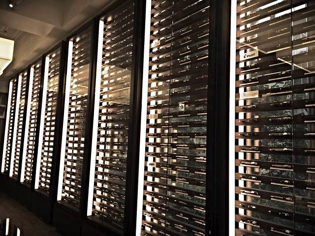 没错,是各种牌子钢笔陈列墙,满满一面墙!!!