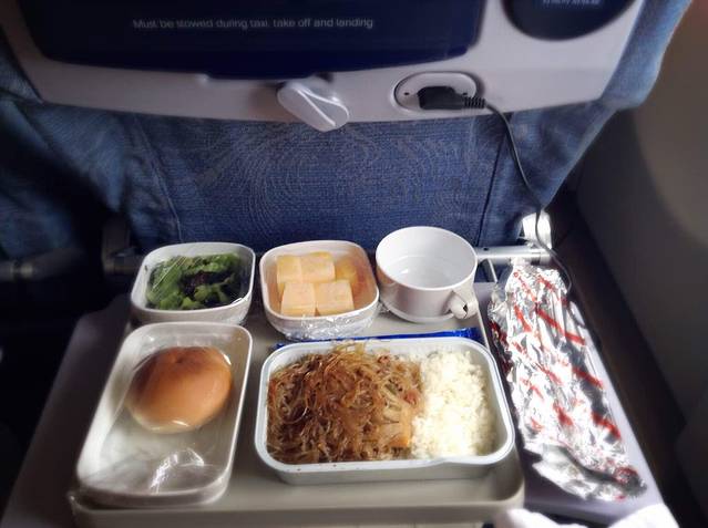 飞机餐选了肉末粉丝饭,味道尚可,把粉丝都吃完了…