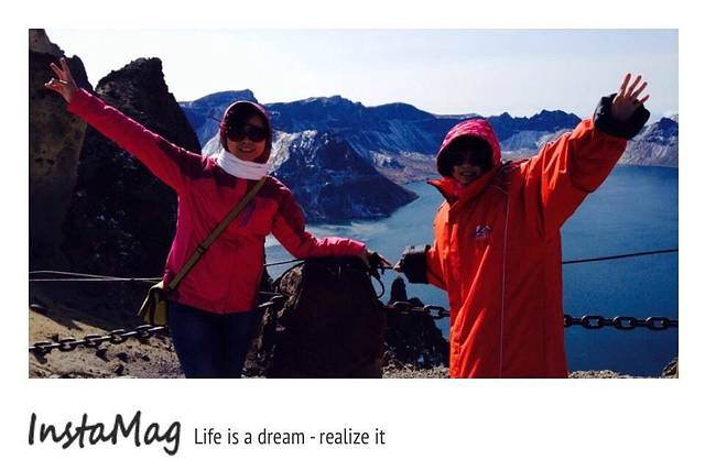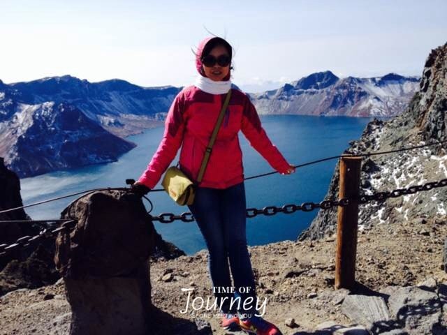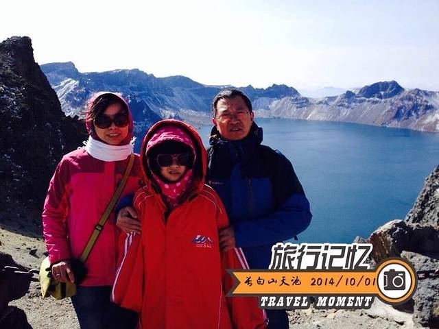 女儿第一次来就看到了天池,运气果然不错!前天还下雨,昨天虽然晴天,可天气预报说今天阴,本来怕上山后下雨的,没想到晴空万里,就是风特别大,往天池边上站都怕被吹下去!不过,用旅友的话说,能看到天池的人,人品好。呵呵,我们全家人品都老好啦!