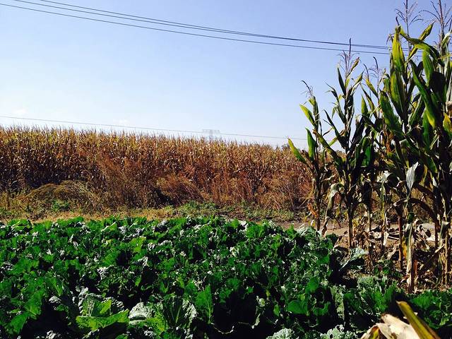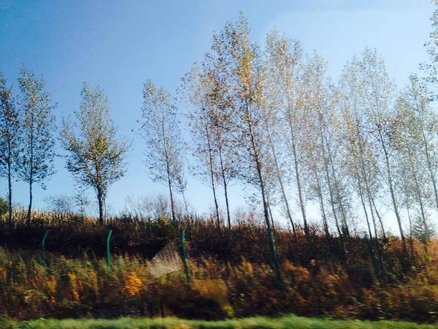 我们来的前一天吉林下雪,回来时下雨,只有登山那天虽冷但晴空万里,使我们得见天池真颜,感谢老天眷顾呵!归途中偶遇一小村庄,早起的人家炊烟升起,溶入斜斜细雨里,远远望去让人有种恍若隔世的错觉,仿佛置身世外桃园一般。