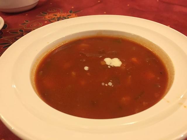 中间那盘是俄罗斯有名的红菜汤,虽然卖相🈶️辣么点~血腥