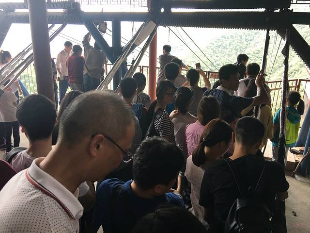各种保护措施都做的很好,随身物品也可以直接带过去。一个大人还可以抱着一个小孩一起坐过去,很温馨,但是这样在索道尽头的时候,一般大人就看不到脸,只能看到小孩,就合照而言,还是略有可惜的。最好不要随身带手机和自拍杆,万一一兴奋掉下去就没有了,你懂得。