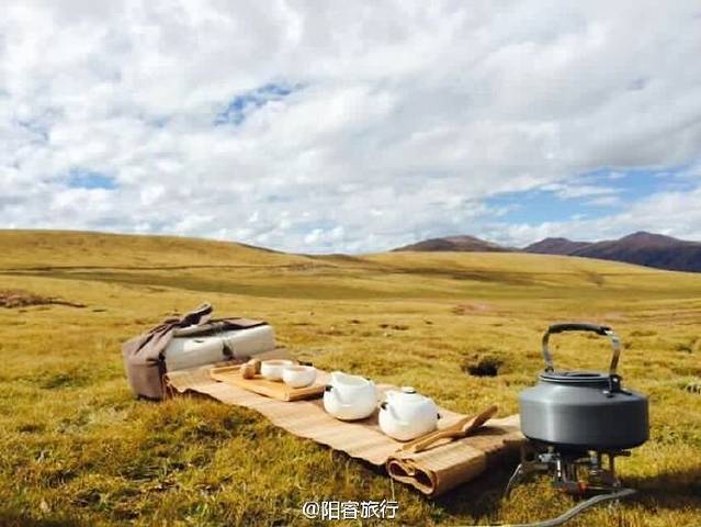 阳睿旅行专业的旅行策划师已提前实施了创意方案,布置好户外营地,用高山炉烧开热水,备好下午茶。