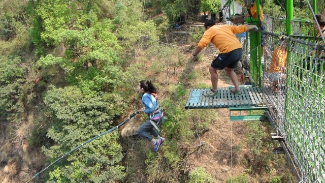 那天风非常大,整座吊索桥都晃晃悠悠。。。160米的高度真的不是一般刺激,哈哈哈~!孤独感和无助感其实是蹦极跳出去之前,那重要的瞬间人所要面对和克服的。你深深体会到在这样的边缘,只有你一个面向深渊,并且只有你一个人跳下去,还要面对地球引力带来的急速下落!贴士:蹦极记得穿鲜艳的衣服,这样拍照更好看哦~