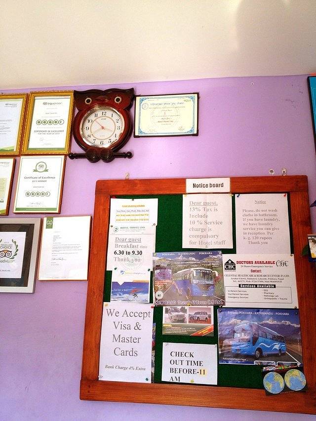 这是联合国代表来博卡拉时入住的宾馆。说实话我们选了精品套间,还是发现床铺不干净并且热水在晚上9点多之后就不够热。不过老板人很好,朋友的东西落下了,我们都回国了,他还帮忙留着。老板比较实在,帮忙订购车票和滑翔伞也都不错。在上一家加德满都的旅馆让老板帮忙定加德满都前往博卡拉的大巴车,我们要求Greenline,结果他说没票只能订另一家巴士。到了大巴车站,碰到中国人才被告知至少车票被坑了一倍!!!车票一定要提前订,原因是必须选择前排座位,否则四五个小时的车程在后排被颠的很惨,连觉都睡不成,非常辛苦。空调大巴倒是比较舒服的,一个人人民币大概80-100的车票,半道会停下来吃两次饭,我每次都免费,同行小伙伴被收过钱。总之在休息站吃的东西也不咋样,所以能蹭则蹭咯~其实估计是有的大巴公司包含午餐,有的不包含,但是没人拿车票领餐,因此有些管理不严格,哈哈~