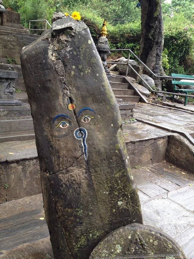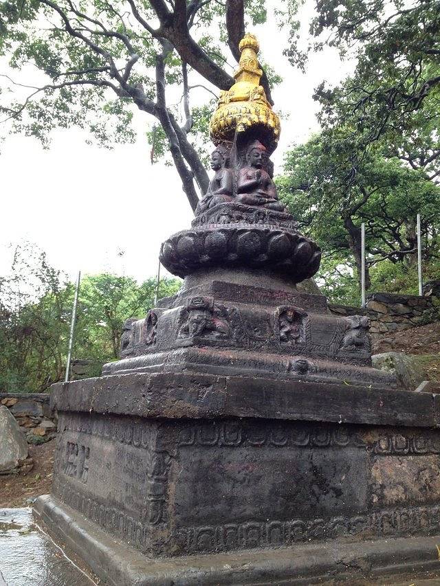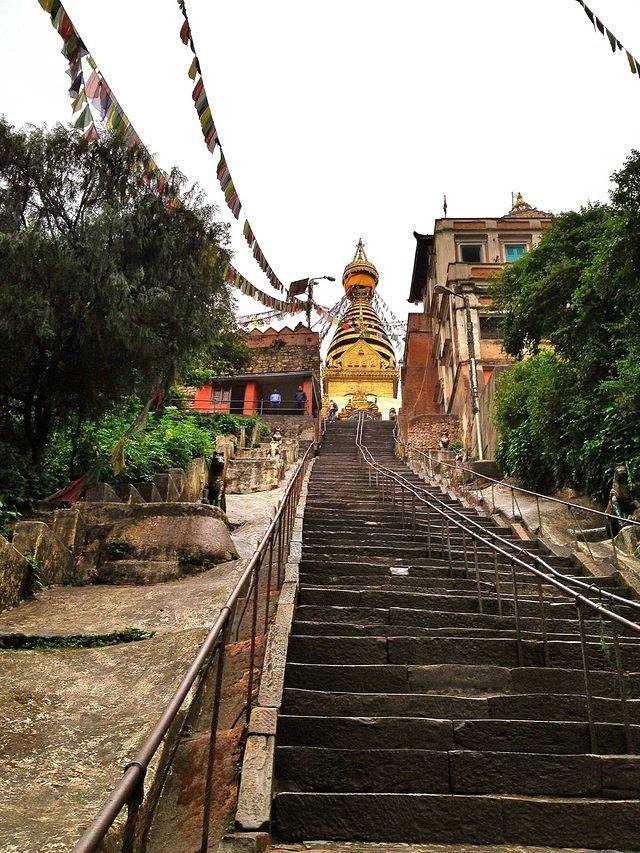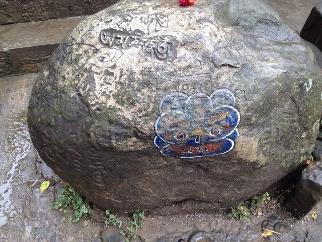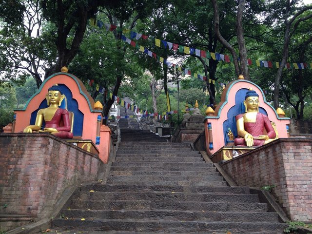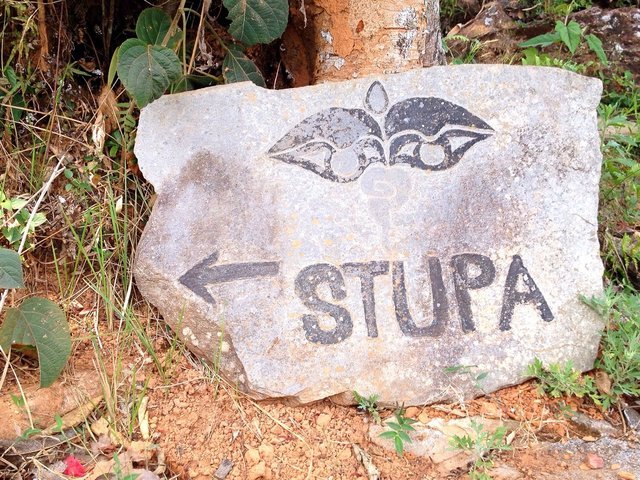 中午大热天搭了船到对岸,开始爬山,向山顶的世界和平塔进发。指路的石头也是标志性的佛眼~