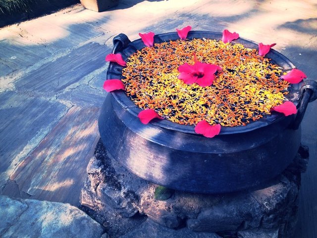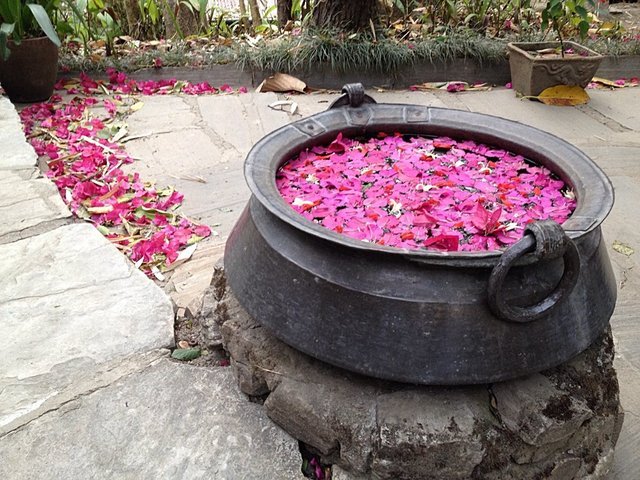 这边常常见到装饰的大小水缸,里面无一例外不摆满鲜花