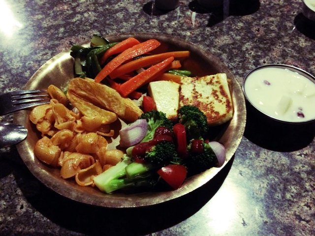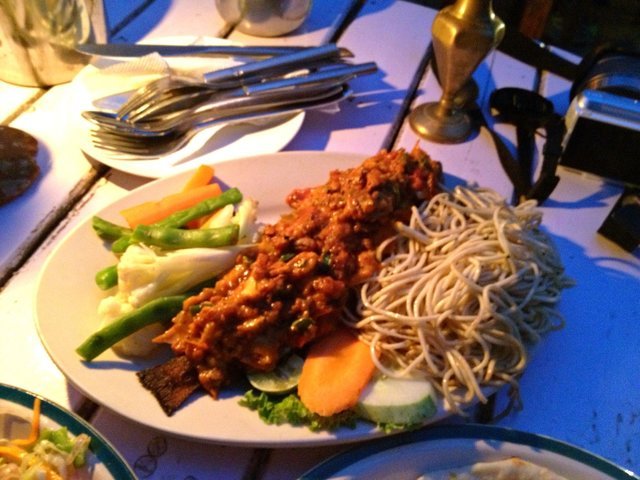 这是当地的鱼,做法有点尼泊尔风格+泰国风格的味道(还有说不清楚的酱在里面),非常好吃,鱼也很鲜~搭配捞面的感觉非常好!!!!!