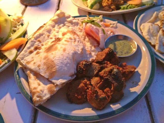 last resort提供免费午晚餐,这是咖喱土豆、咖喱辣什锦、米饭(印度式),还有一种奇怪的薄脆饼,似乎是油炸,里面有诡异的菜末味道。整体来说不错~