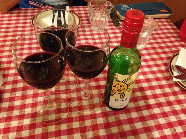 LP推荐的加德满都的意大利餐厅,税费和服务费单独收取。这是他们推荐的红酒,后来在超市发现了更便宜一些。可以单杯或者半瓶购买~