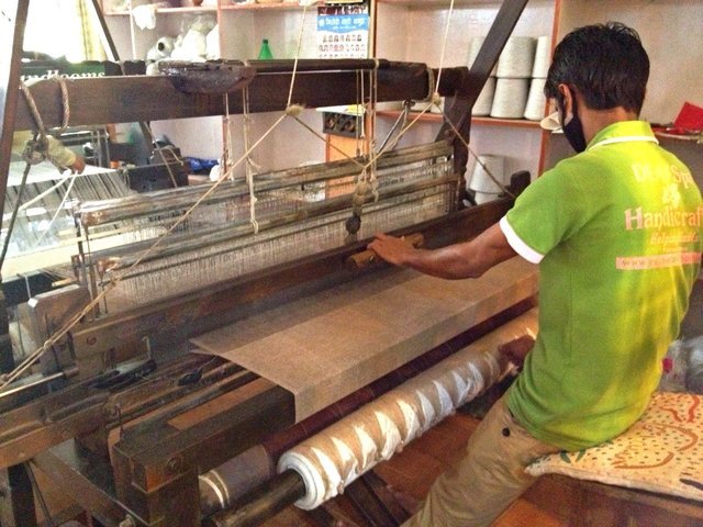 整个屋子都是咔嚓咔擦的纺织声,这些人都是聋哑人,这家店是半公益性质的,雇佣了大量聋哑人来劳作。