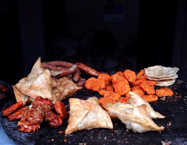 哈哈哈哈,这才是名符其实的接地气~走累了看到街边苍蝇馆子门口都放着类似的东西,一问才知道是各种油炸咖喱相关东东。买了两种,很便宜,很好吃,但是肯定热量超标、卫生不达标~
