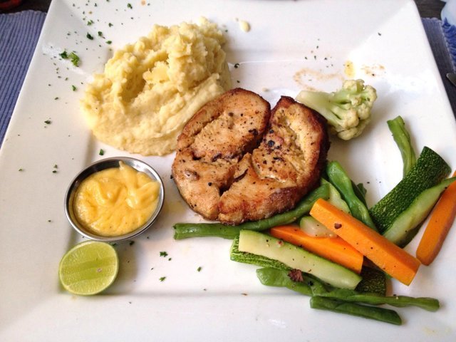 Moondance是湖滨区有名的店,上下两层紧挨马路很显眼。我们折腾一天跑来吃东西,坐在二楼刚好赶上一场雨~其实说实话,并没有LP上说的name好吃,不惊艳,价格不算低。这是烤三文鱼配土豆泥,有点老。