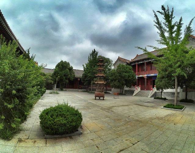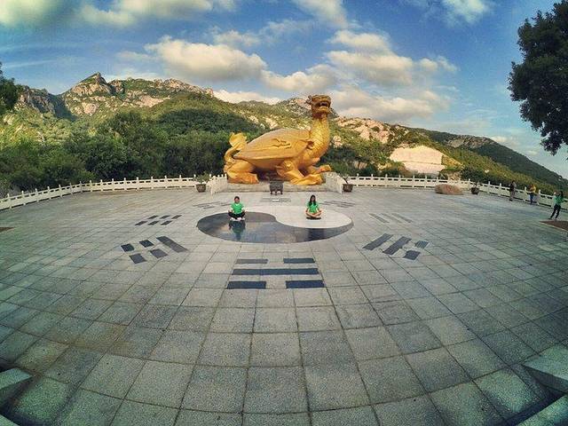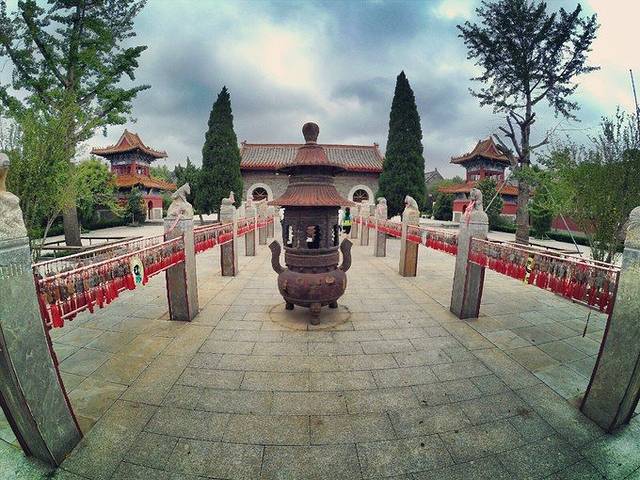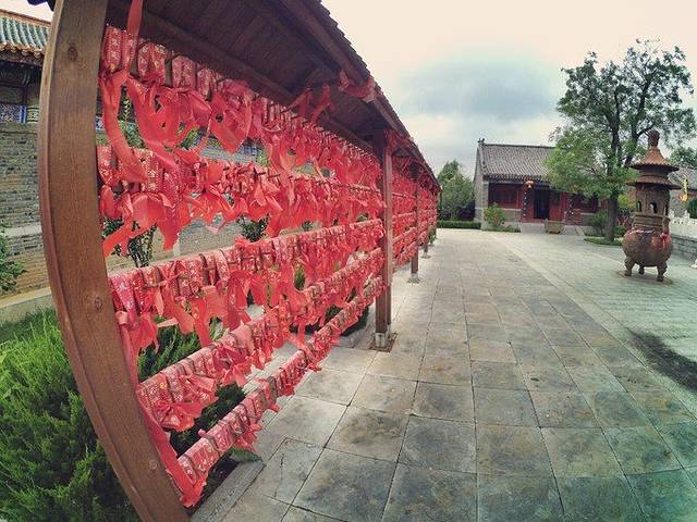 细雨蒙蒙,远处的矮山雾气腾腾,细闻淡淡的香火味道,下午栖霞的太虚宫里意境更加浓重。太虚宫是全真龙门派创始人丘处机于公元前1191年,以故居为观主持修建的道观,距今已有800多年的历史。现在的太虚宫草木郁郁葱葱给人一种与建筑融为一体的感觉,说道草木就要提一句了,通过这两天的行程,我发现烟台的绿化覆盖率都挺高的,到哪都像是个花园。