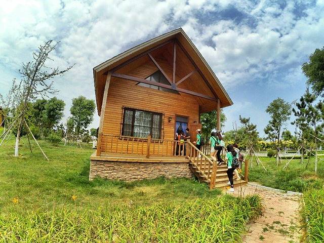 从孟格庄出来,开车不到两公里,就到了春雨滨海度假村,走马观花式的参观了一下海边的小木屋,虽是走马观花,但却是我印象最深的一个景区。