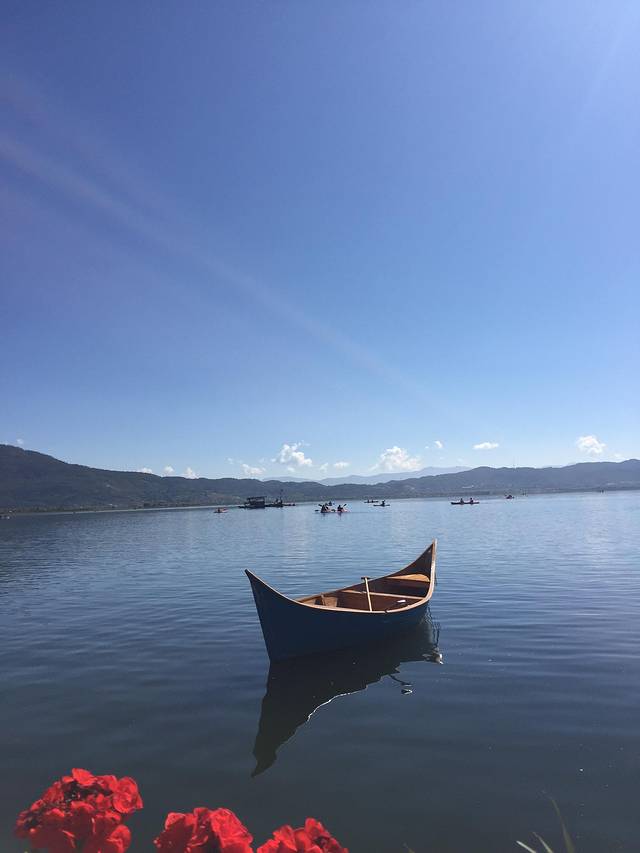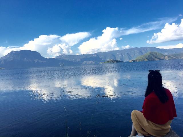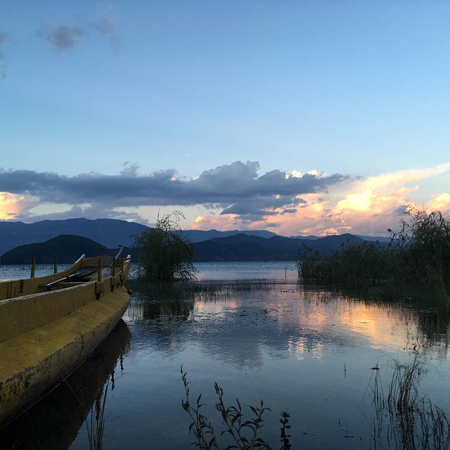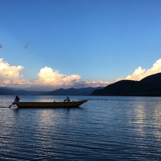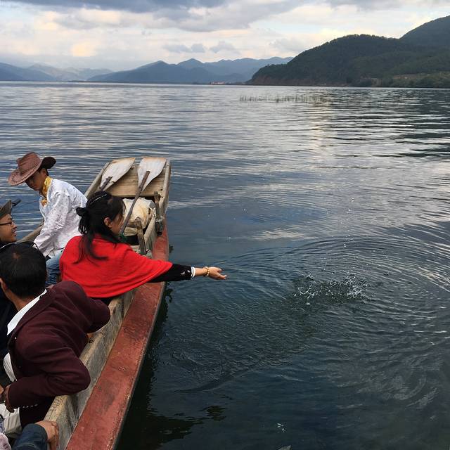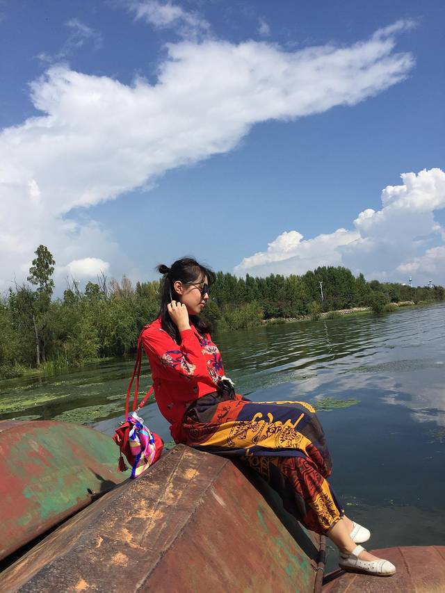 在猪糟船上,十七八的腼腆小哥熟练的划着船,慢慢深入湖心,那种感觉,太舒服了