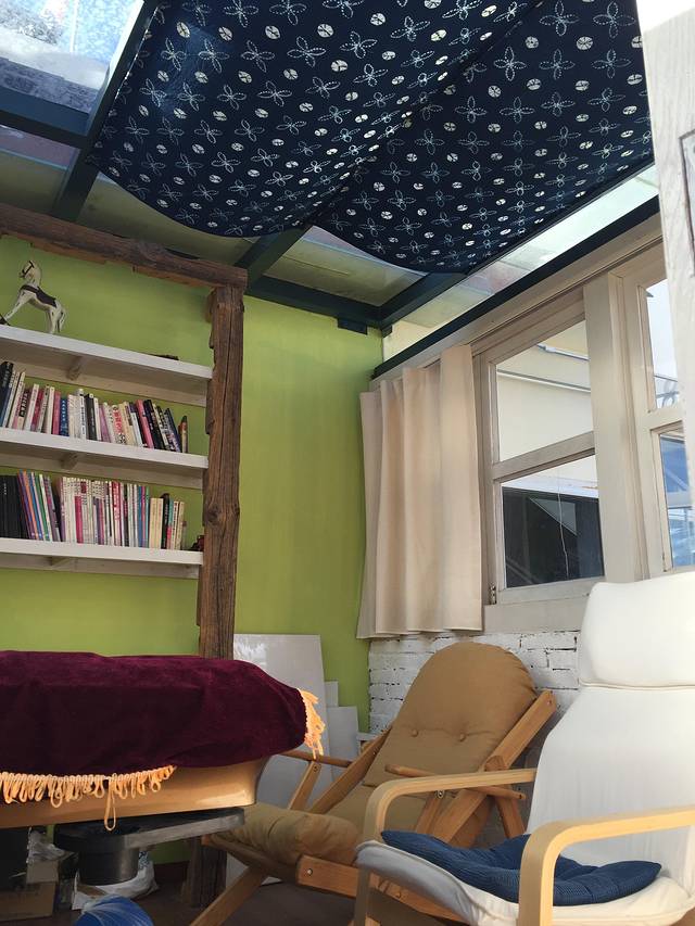 上楼梯,可以在玻璃台子的躺椅上,尽情的看天发呆