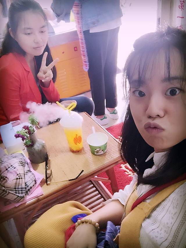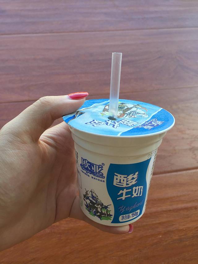 我吵着非要喝稠酸奶~欣姐喝了个会冒泡的东西