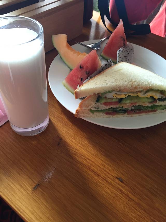 老板家有早餐次~看着都有食欲对不对~牛奶喝不惯,还有老板娘亲调的咖啡~