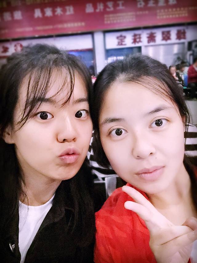 在我的威逼利诱墨迹之下,欣姐同意合照🏻两个狼狈人,自拍一下~