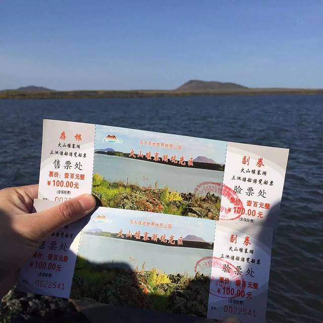 第一站到三池子坐船游览,据说一共被火山分成是五个池子,三池子最大,坐船沿池可看到7个火山。船票100元。