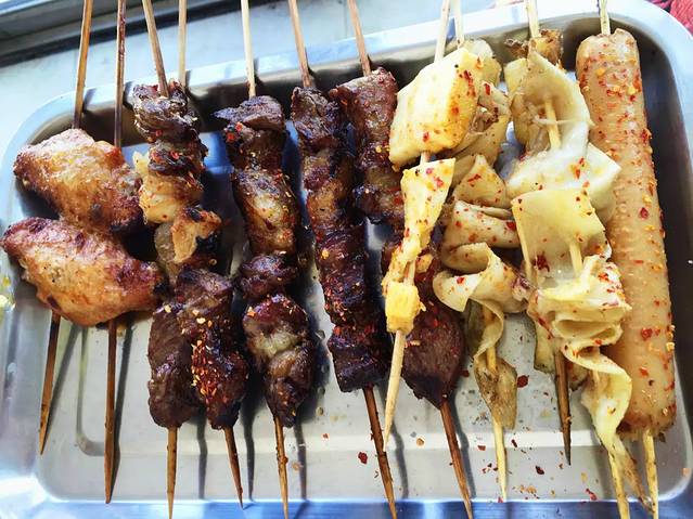 不仅有铁盘还有烤串。大块肉很出名,但是肉太大了 吃一串容易顶着。其它板筋鸡翅都很入味。