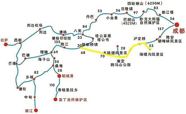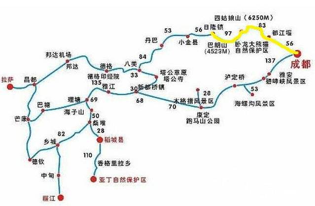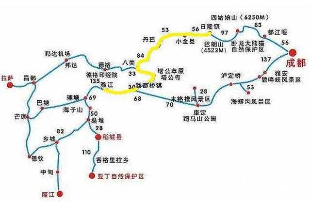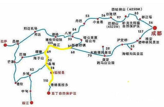 新都桥——雅江——卡子拉山4718——理塘——兔儿山——稻城————香格里拉乡(日瓦)