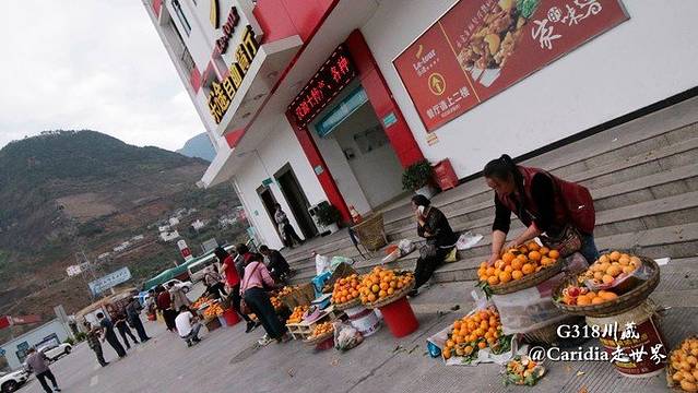 由于二郎山经常堵车,我们选择了绕道石棉,在休息区,村民热情地叫卖着新鲜的水果。1块5一斤的橘子(不知为何,这里的橘子皮超级难扒滴)