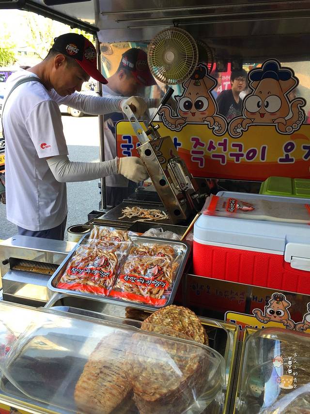 看着人家排队等候,我们只能在路边买份煎鱿鱼弥补一下心伤,滚烫的鱿鱼刚出锅,味鲜肉厚Q弹可口,果然和袋子里装的干巴巴的鱿鱼干不一样。