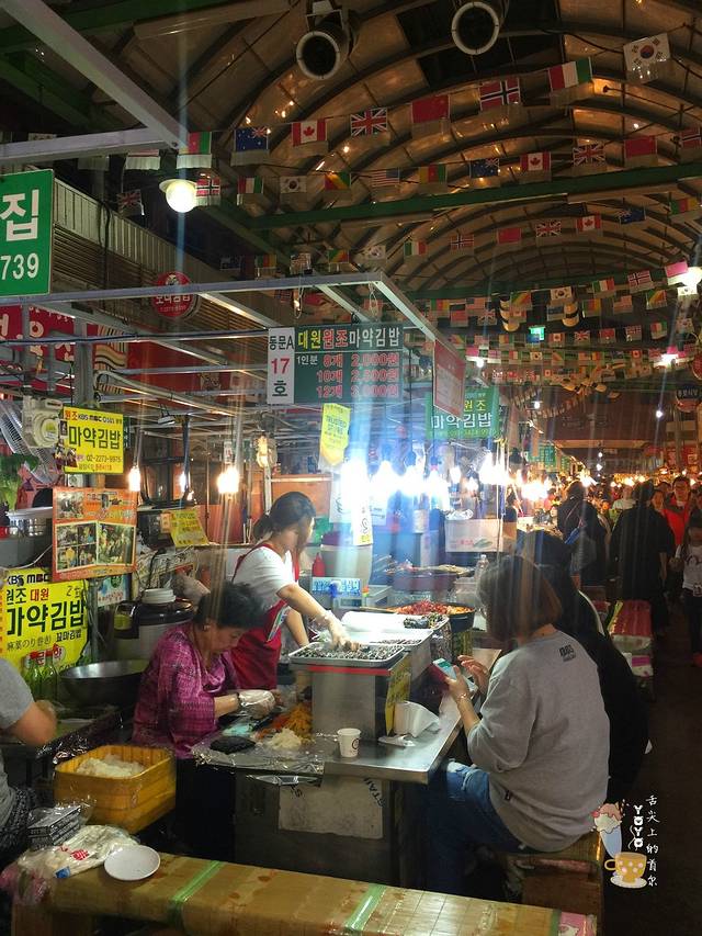 在韩国不管衣食住行有个显著的特点就是“扎推”,基本上卖一种东西的摊位都在一起,这个特点在广藏市场就有所体现。