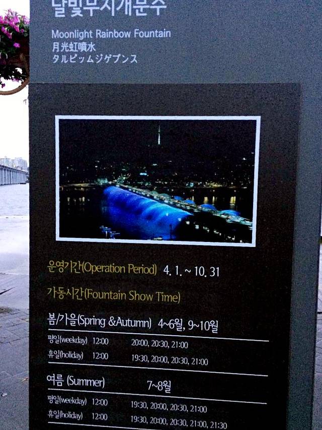 走到桥下隔着喷泉看三个人工浮岛,不得不说首尔作为设计之都,在每一个不起眼的角落都能设计出特别的景观,也是用心良苦。