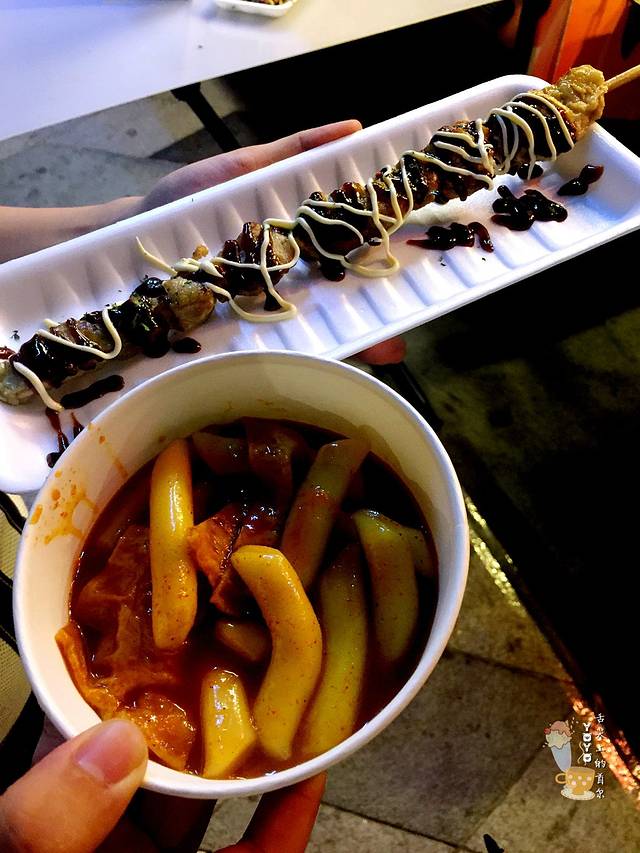 我们奋力拼搏才买了份巨辣无比的炒年糕和鸡肉串,就仓皇而逃了,和首尔本地土著吃货相比,我们段位还是太低。