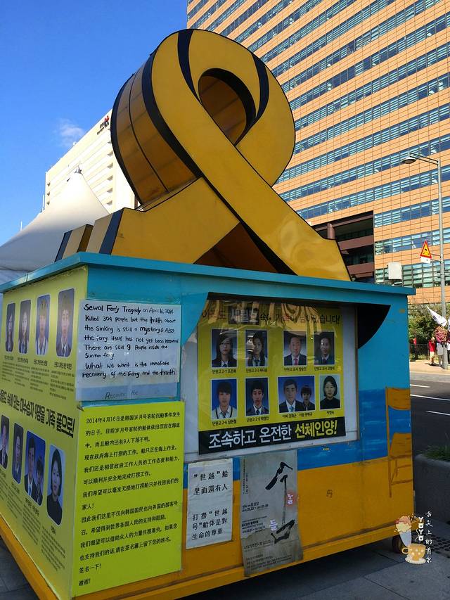 如今岁月号仍沉没江底,还有九位遇难者困于船中,他们的照片张贴在这个国家首都最重要的广场上,怀念他们的人用中、英、韩文向全世界呐喊着“岁月船里还有人,打捞岁月号船体是对生命的尊重”。