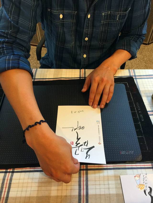 门口还有两个人给大家写名字,顺便起一个韩国名字。我们拿着自己的护照排队等待,给我取的名字是“春花”,是要夸我像花一样美吧~给我家男人取的名字是“星星”,一闪一闪亮晶晶。