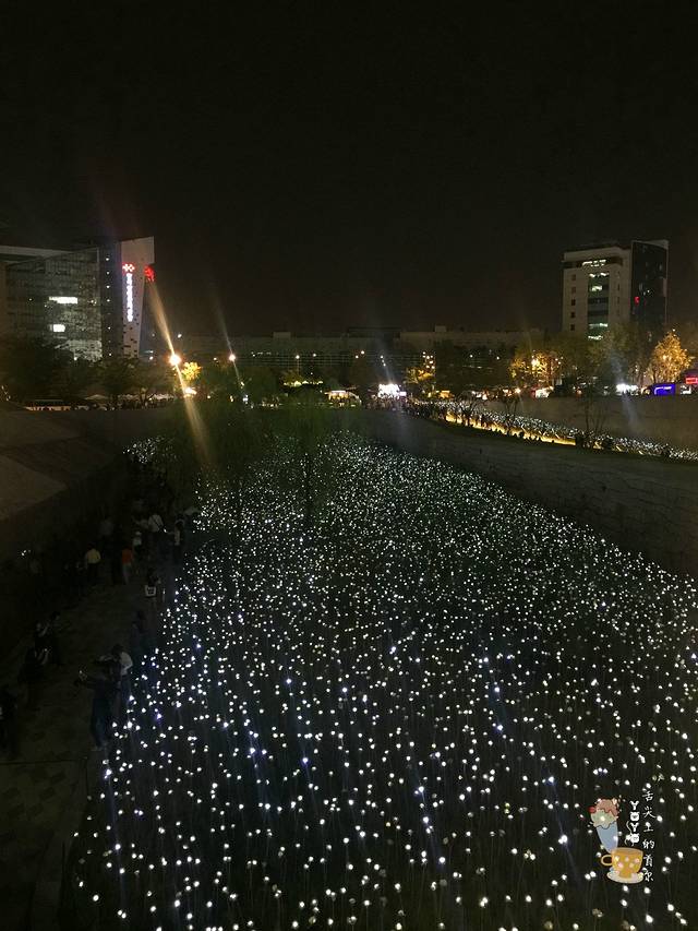 清溪川紧邻东大门,是以前的一条肮脏恶臭的地下暗河,在城市改造时重见天日,成了首尔市民夏日游玩的清凉去处。