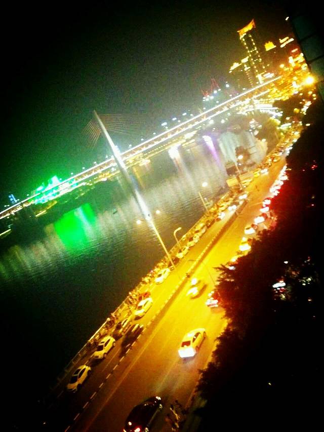 鹅岭公园回来以后到了洪崖洞。洪崖洞这条公路也是小岳岳追出租车的地方,这条马路,还好就在青旅楼下,不然回住宿的话要很晚了…