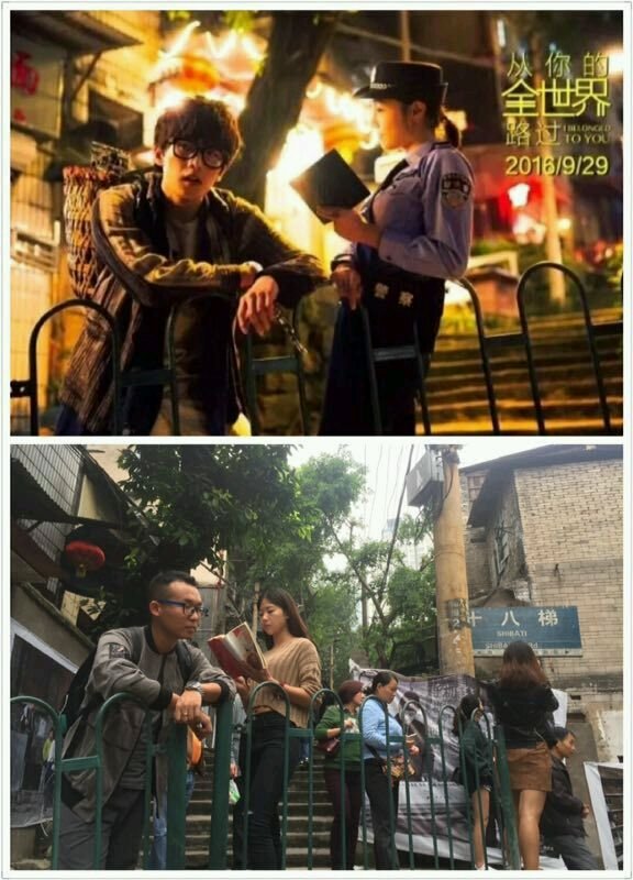 解放碑白天人太多就是去寻找剧照的地点。上午去的工商大学,下午到解放碑,由于建筑太多,实在太难找,幸好青旅小伙伴在掌柜的带动下和我一起找,白天我们找地点。