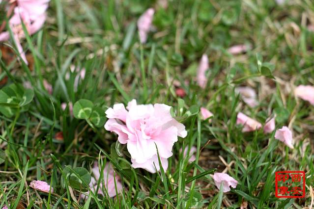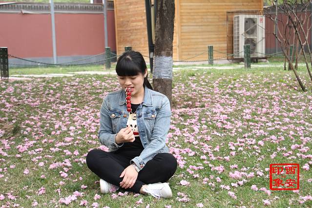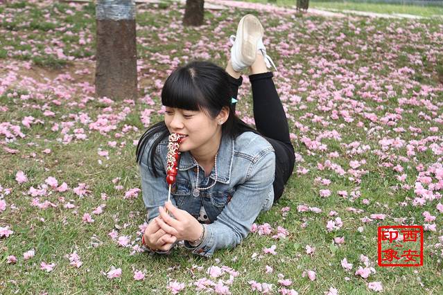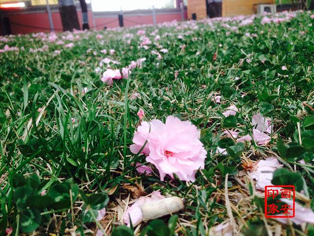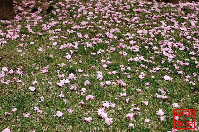 大雁塔广场一个角落里,满地的樱花,美得人已沉醉不知天色已晚