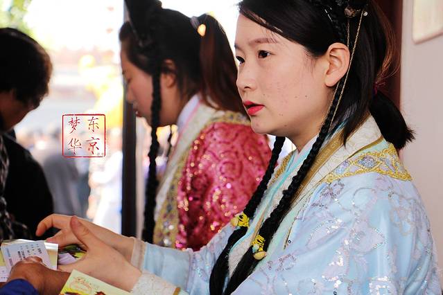 清园里所有工作人员都是着古装,检票妹妹好美啊