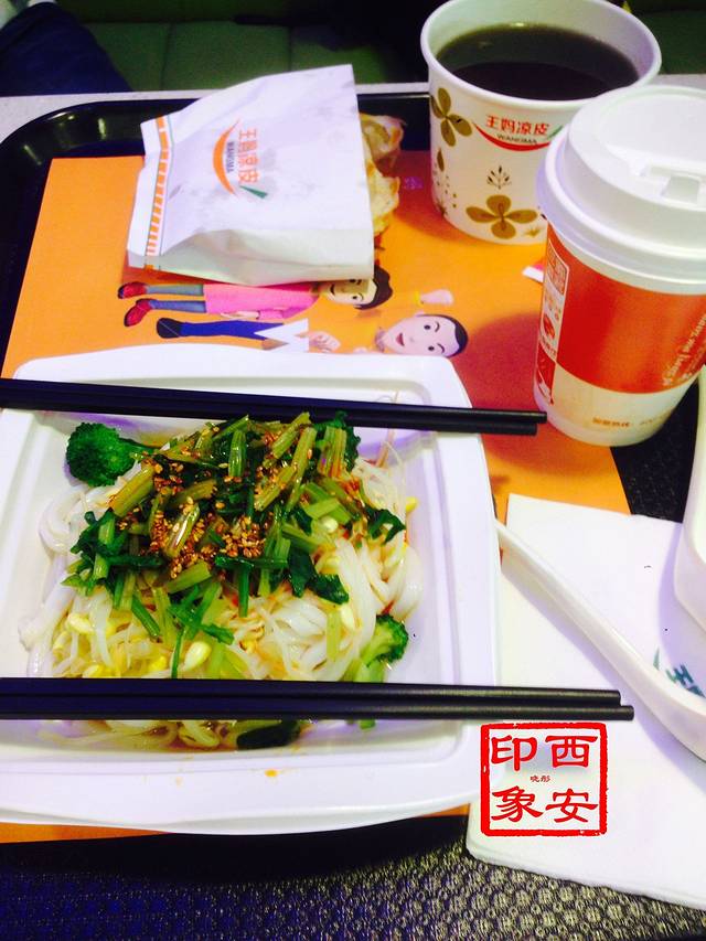 早餐是在酒店下面的王妈凉皮吃的。点了几个早餐,综合起来个人感觉凉皮还行,豆浆特别好香醇又热乎乎的,一个什么粥来了很淡没有甜味,肉夹馍很咸。 对了,王妈对面是魏家凉皮,两家都是连锁的,后来听以前在西安读书的同学说,魏家凉皮很不错,没有去过,不予评价。