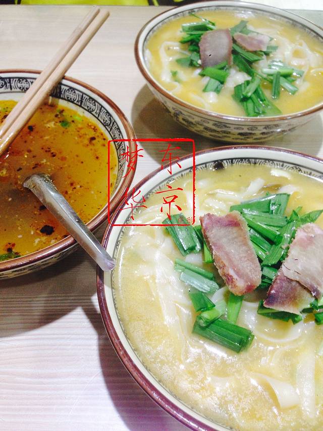 我说北方的面食什么的真是很能体现他们粗犷豪放的性格啊,分量总是很足!!碗那么大,面那么多,这样做生意真耿直,还有啊那么大的碗那么多汤,喝汤都不用勺子的。我和小倩每次问店家要汤勺的时候总被笑说“你们是南方来的吧,喝汤用汤勺”