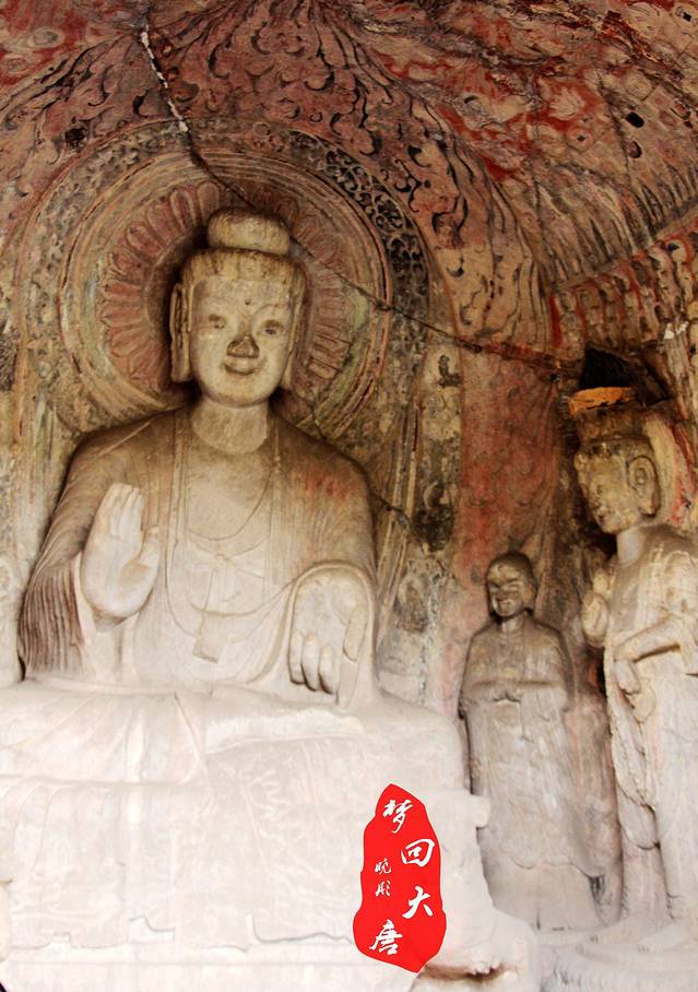 【龙门石窟】石窟位于洛阳的伊河两岸龙门山和香山崖壁上,开凿时间是北魏孝文帝到北宋的四百余年,至今存有佛龛2100多个,造像10万余尊,碑刻题记3600余品。在石窟里的造像有大有小,最大的是卢舍那大佛(就是武后那个)17.14米,最小的是莲花洞里边的小佛像只有2厘米!北魏那时候国家动乱,宗教成了统治者控制人民思想的武器,人民也需要精神的寄托,唐朝丝绸之路繁荣,丝路险象重生条件恶劣,人们更是需要信仰的力量。因此北魏至唐期间自上而下都推崇佛教,唐朝还有玄奘法师到天竺求经,鉴真东渡等佛教交流活动。后来就没有那么盛行了,出现了几次灭佛活动。