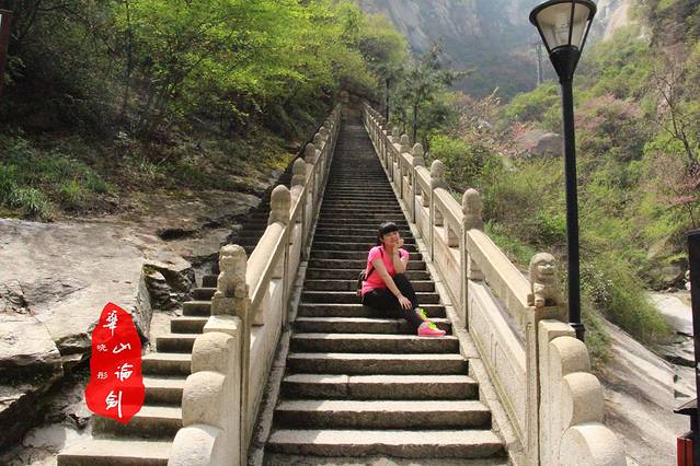 2.关于装备 山上紫外线强,大多地方光秃秃的,地板也是光滑的石头。因此做好防晒防滑工作,穿运动的衣服和防滑的运动鞋,带个帽子、太阳镜遮阳(帽子在山下有卖,小倩就是山下买的10元,我借来拍两张照 墨镜居然忘记放包里!也是昏对自己了) 如有需要可以拿登山杖,还有水和小食物(现在没有多少人山上的东西还可以接受的,也可以在山上买)