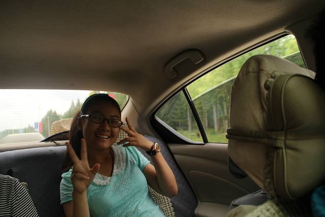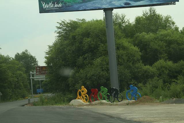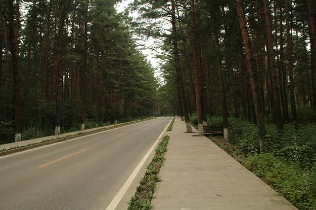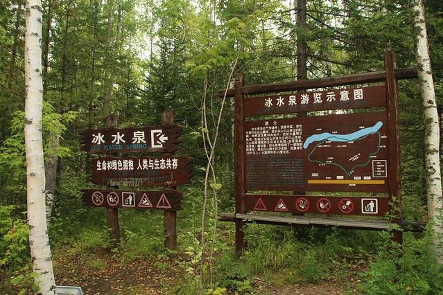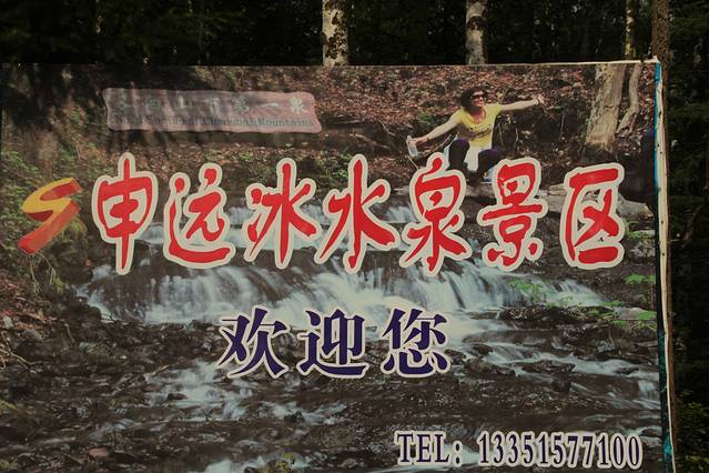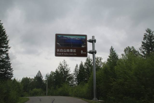 下山 ,吃完 午饭 ,走 长白山 环山线 去 西坡 、南坡 。池北区 长白山自然博物馆 后的 山水街-玉泉路 也能 绕到 环山线 上 ,正值 修路 施工 就没有走 ,走的 美人松 苑的 环岛 ,一路直行 。