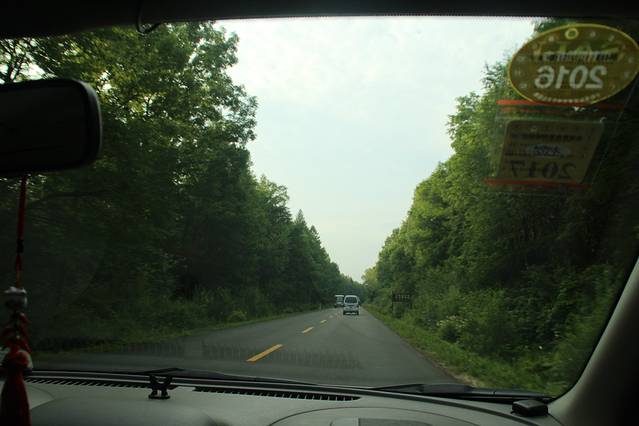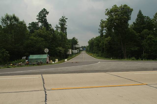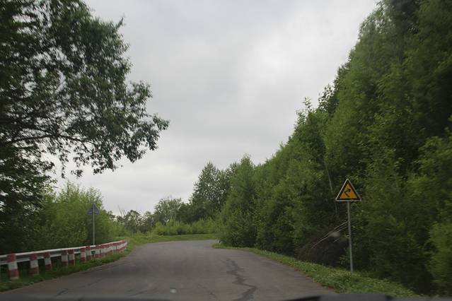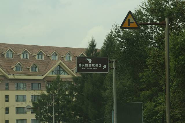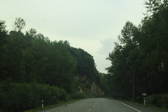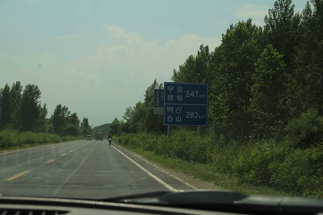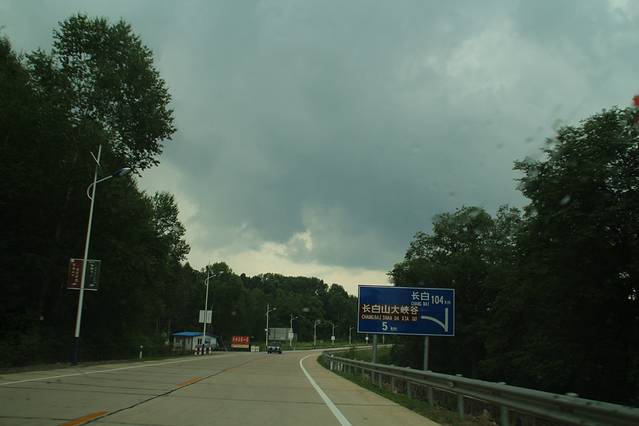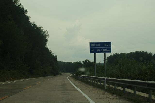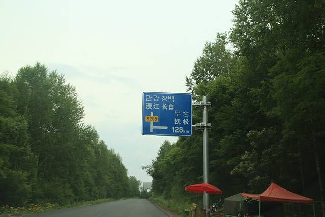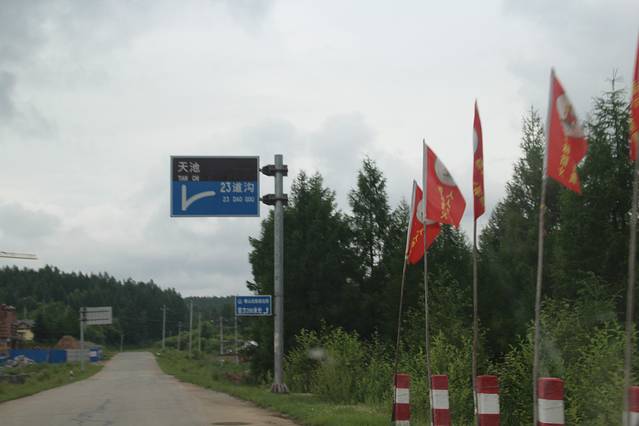 临近 大 蒲柴河 镇 ,有岔口 左转 进入 S102 省道 ····经 松江镇 到 二道白河 。可是 松江至 二道白河 修路 ,封闭施工 ,所有车辆 绕行 两江镇 至 二道白河 ,路况 奇破 ,狭窄 。七绕八拐 ,敦化 至 北坡 160多公里的路程 走了 4个多小时 。在 池北区 路边 找了家 宾馆入住 ,4人间 320 。