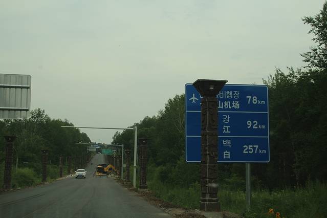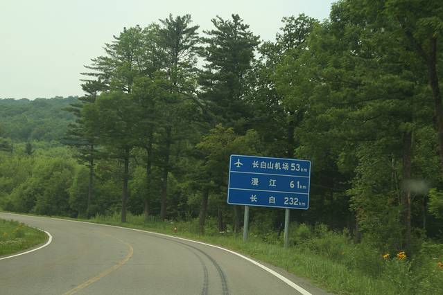 环山线 遮挡的字 是 长白山 机场 漫江 长白 ,行走中 抓拍 。