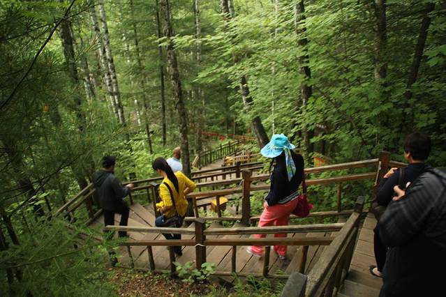 长白山 北坡 是 长白山 景区 开发最早 、设施最完善 、景点最丰富的地方 ,大部分的游客 来 长白山 都是 奔着 北坡 来的 。门票收费 北坡 、西坡、南坡都是一致的 ,门票 125元 环保车 85 元 ,不同的是 上 主峰 看天池 ,北坡是 坐 倒站车 ,奔驰 面包车 或 越野吉普 ,80一位 。上山的 盘山路 险峻 ,坡陡 弯急 ,坐过山车的感受 。西坡呢 ,是 环保车 把游客 拉到 主峰下 ,攀登 1442级台阶 到 天池 ,不建议 老人和孩子 走这条路线 。而 南坡呢 ,景点不很多 ,可是 环保车 能把游客直接 送到 天池附近 ,并且 观赏 天池的 角度 最好 ,能 饱览 天池 全貌 。遗憾的是 南坡 山门 关闭 好几年了 ,至今 尚未 开放 ,下节 祥述 。到达北坡的 路线 大致有这么 几条 :黑龙江省 方向 、吉林市、长春方向的 游客 ,自驾 或是 旅游大巴 大多 是走 敦化 、G201 、大蒲柴河 一线 ,就是 我当前 走的路线 ,敦化市 以东的游客 也可以 走 安图县 向南 S203 省道 ,最终 也是 汇入 S102 松江镇 之前的 第一条路线 ,也是 受 松江 封闭 修路 之扰 ,绕路 两江镇 。延吉市的 游客 可以走 S202 省道 ,直达 松江镇 ,至于 饶不绕路 就不很清楚了 ,估计 很悬 。吉林西南部 和辽宁省的 游客 可以 走 G201国道 、经靖宇县的 抚长 高速 到 抚松县 ,走 S302 省道 经 松江河镇 、长白山 环山线 到达 西坡 、北坡 、南坡 。松江河 附近 建有 长白山 机场 ,还有 一处 万达 度假区 ,可供 资金充裕的 游客 服务 。做火车 的游客 就简单了 ,可以直达 白河站 ,白河 离景区 还有40多公里 ,要去 北坡 就得 打车 或 拼车了 ,在住宿的宾馆 、旅店 就有联系 点 ,很方便 。费用 在 打车 60 ,拼车 15一位 这个样子 ,仅供参考 。坐火车 想去 西坡的游客 ,可以在 松江河站 下车 、住宿 。同样也需要 打车 去景区 ,费用 就不很清楚了 。还是 建议 自驾 或 包车 跟团 游 ,毕竟 方便一些 。想走 露水河镇 方向 去 北坡的游客 就打消念头吧 ,那条路 全线 封闭 施工 ,没法走了 。 没看懂的 朋友 可以 上 百度 地图 好好看看 。7、8月份 暑假之时 是 长白山 游玩的 旺季 ,景区 7点 左右 开始售票 ,等候 环保车 上山 ,到 9点之后 ,游客 渐多 候车的 游客 就要 排起 长龙了 。所以 头一天 到达 二道白河的 游客,第二天 就会 早早的 赶到 北坡山门 购票 上山 。一夜无话 , 20号 早早起床 吃饭 出发 。