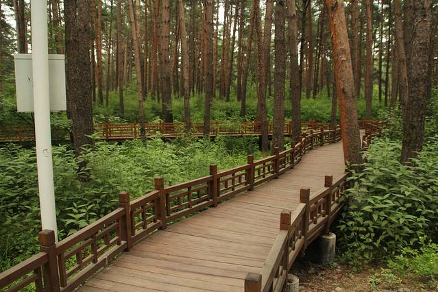 距 长白山 南坡 景区 16 公里 。其实 在 西山门 售票点 就打听了 南山门 是否 开放 ,不仅是因为 南坡 看天池 角度最好 ,更因为 南坡景区范围 是 鸭绿江的 源头 ,有险峻的鸭绿江 大峡谷 。可得到的 回答是 没有开放 ,既便如此 ,也要去瞧上 一眼 ,省的 后悔 。